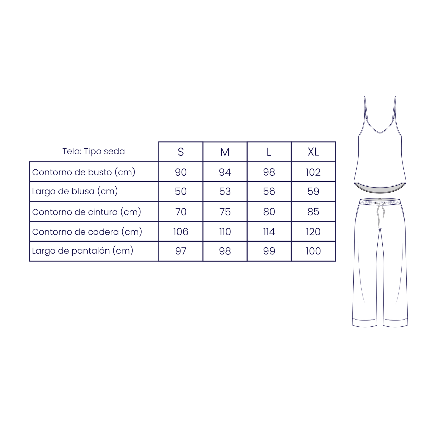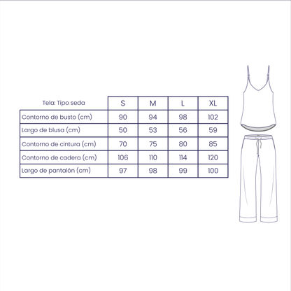 - Tela: tipo seda, suave y respirable.