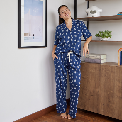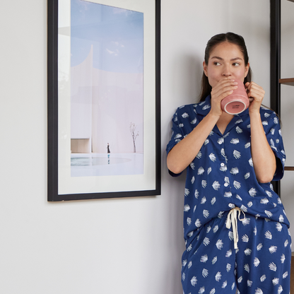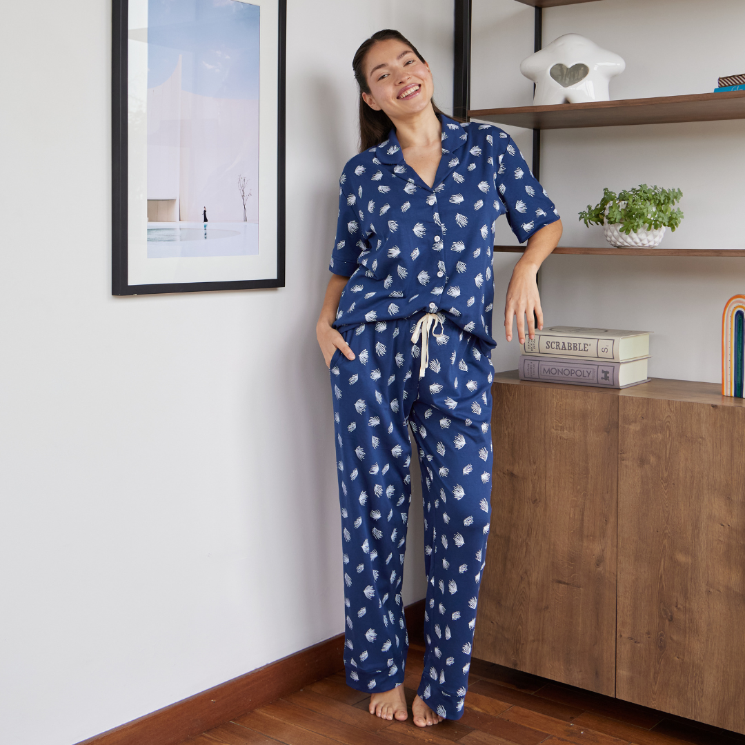 Nuestra pijama Azur ha sido diseñada para que disfrutes la comodidad al máximo, combinando un estampado exclusivo con una suavidad incomparable. Es ligera, fresca y perfecta para dormir cómoda y feliz!