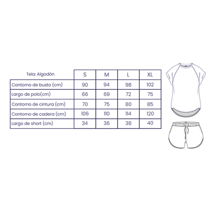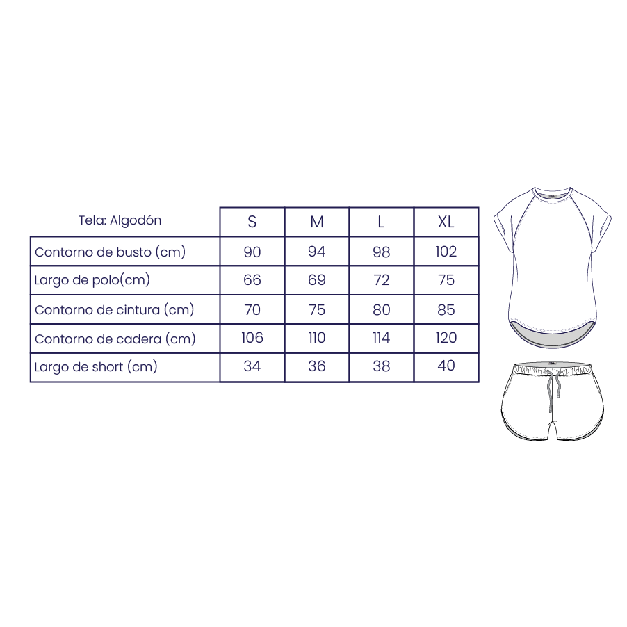 - Short: con bolsillos, cintura elástica y cinta ajustable.