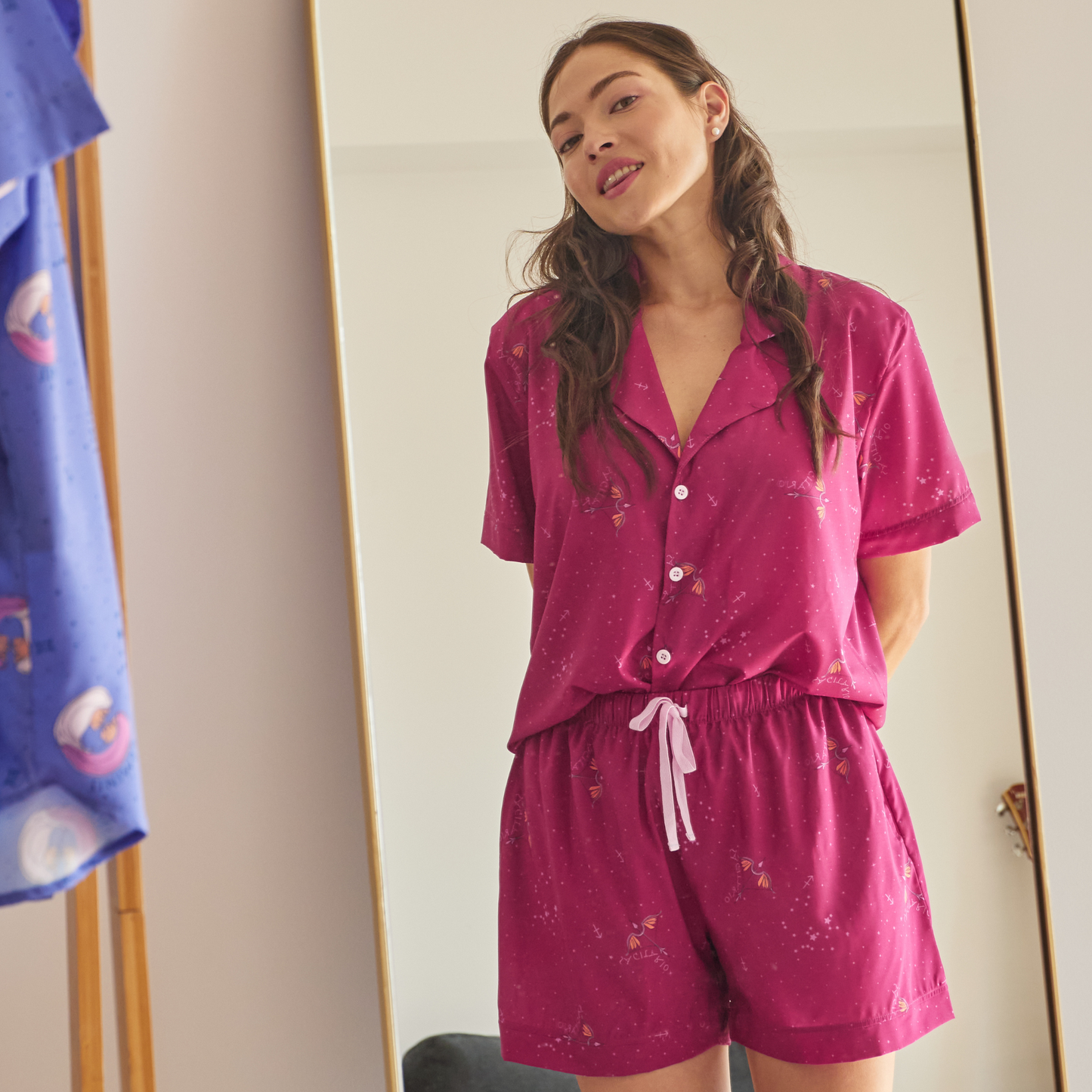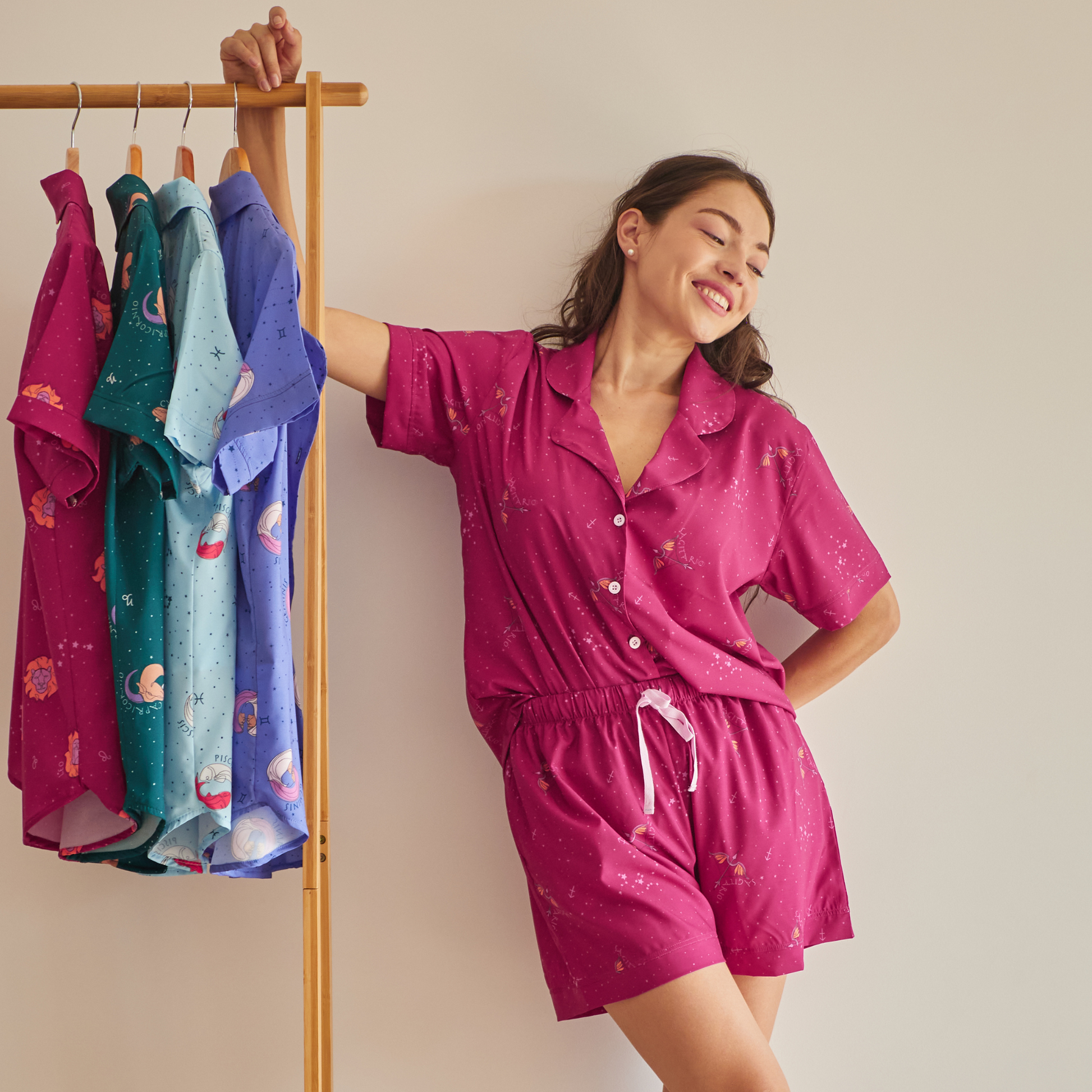 Nos inspiramos en la magia y la esencia de los signos para crear nuestra pijama zodiacal Sagitario. Disfruta la comodidad al máximo, combinando un estampado único con una suavidad incomparable. Es ligera, fresca y perfecta dormir cómoda y feliz!