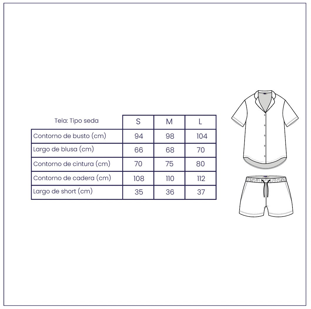 - Short: Corte clásico con bolsillos, cintura elástica y cinta ajustable.